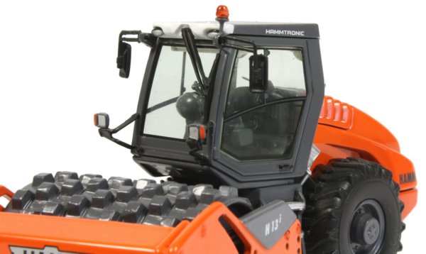 Presented here is the 1:50th scale Hamm H13i single drum compactor from NZG. This version of the model has been released with a padfoot roller drum surface while a smooth drum version of the model is also available, both fitted with a fully enclosed cabin.