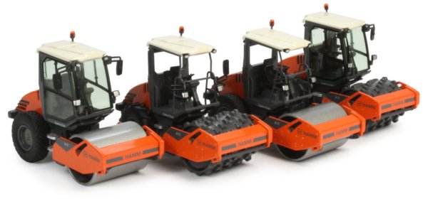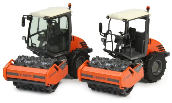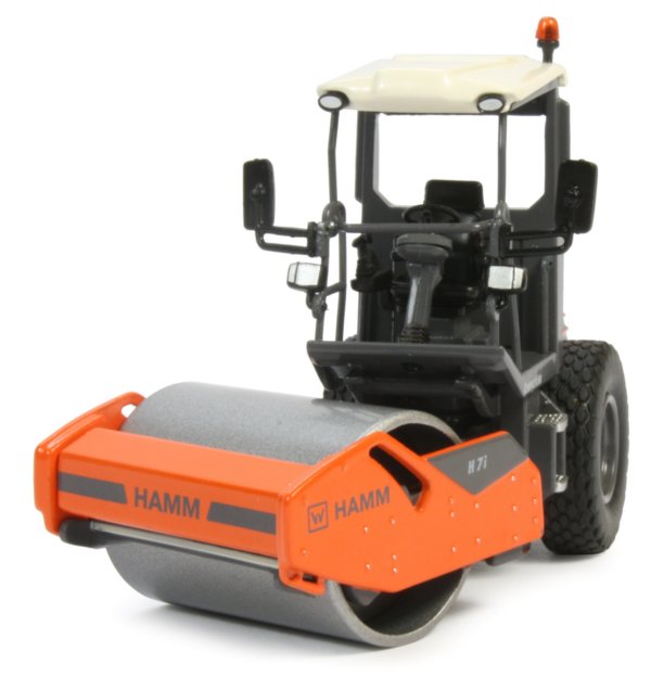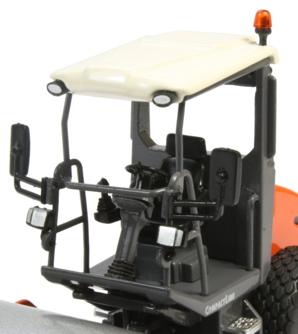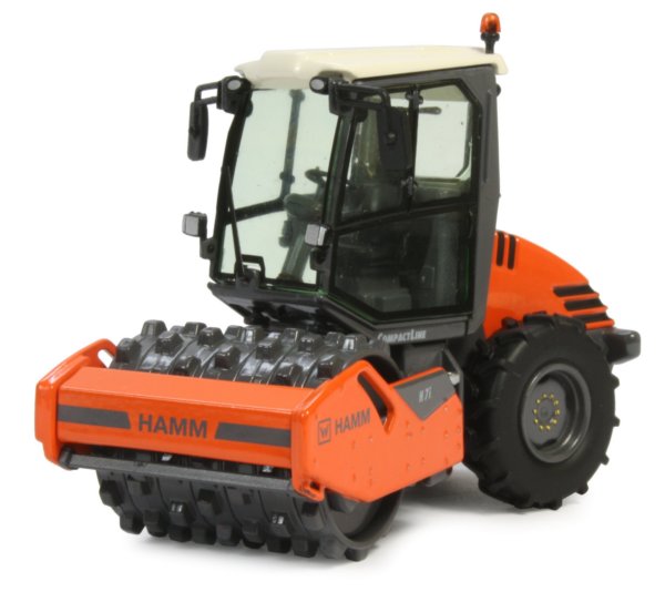 The curved rear engine housing offers an excellent view of the area with surface engraving of the cooling grills which are enhanced with black paint. The paint finish is good throughout with authentic placement of the new Wirtgen Group and Hamm markings.