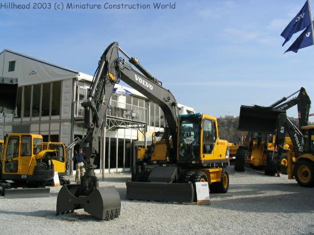Volvo The Volvo stand had moved from the previous hillhead and had a number of new machines on display. The new BL71 backhoe and EW160B were displayed along with articulated dumptrucks, wheeled loaders and a long reach excavator.