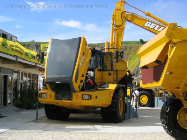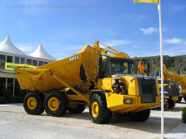 Hillhead 2005 - Page 2 Bell Bell had a larger display area at Hillhead than at previous shows and there were a number of machines on display. Their new range of Tracked excavators were amongst the lineup along with their range of articulated dumptrucks. For model collectors, the Bell B40D model was available for sale and there will be several more new models introduced within the next six to twelve months. I cannot reveal the new models at the moment but hope to be able to announce them in the next 4 to 8 weeks. Page 1 | Page