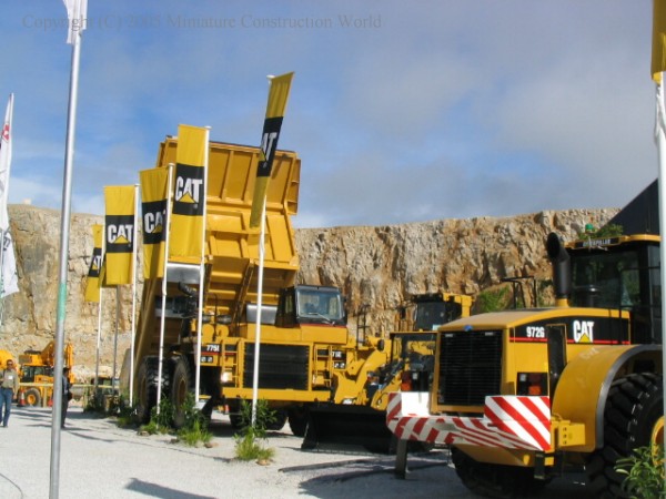 The Caterpillar stand overlooks the north demonstration area and there were a number of Cat machines on display. The 365C shovel was busy working along with 980G and 966G wheel loaders and a 732 articulated dumptruck and 771D rigid dumptruck. On static display was the 990 and 972G wheeled loaders, the 345C excavator and the new D9T bulldozer The Cat Shop was at Hillhead this year selling most of the Norscot models at reasonable prices. There was no news on any more new models for the end of the year but Norscot is rumoured to have more than 15 models in development for release over the next 12-18 months. Page 1 | Page