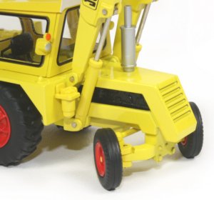 One welcomed feature on the model is the very good degree of steering lock on the front axle which has freely rotating wheels complete with authentic looking rubber tyres with the unusual ribbed tread pattern and yellow painted bolt head. The rear tyres also have an authentic moulded tread pattern and are mounted to red coloured, ribbed wheel hubs.