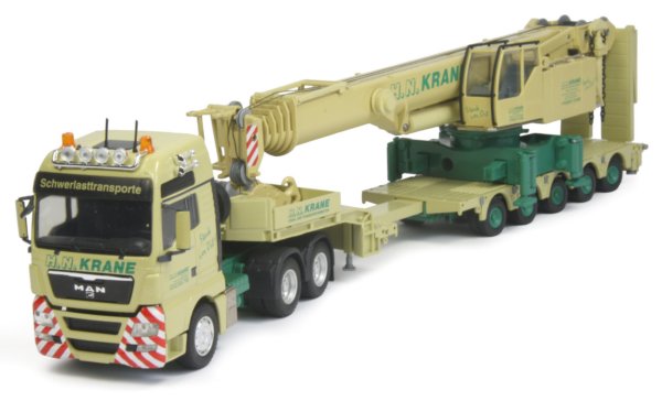 This is another superb model from Conrad with a host of details and a heavy, well constructed feel. The fully functioning undercarriage and rear counterweight system is excellent and really adds to the model. The model is pictured below as a transport load for the MAN TGX trucks models in H.N. Krane colours from Conrad.