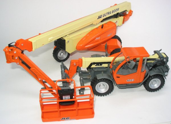 The model is deceptively large with an 11" length when fully collapsed and is pictured below next to the JLG 4013 telehandler model to give a size comparison.
