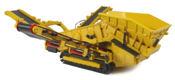 Presented here is the 1:50th scale Keestrack Frontier tracked screener. The model is certainly a surprise and has been produced in China exclusively for Keestrack. Keestrack was established in 1988 and manufacture high quality mobile aggregate equipment. Based in Belgium, they have a varied portfolio of crushing and screening products including the Frontier Standard three grade screener which is reviewed here.