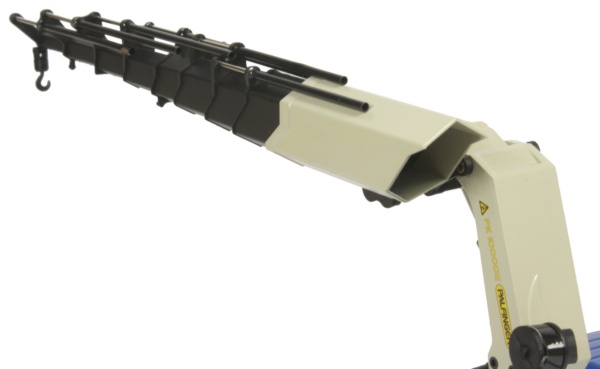 The geometry of the boom movement has been captured well and folds neatly behind the cab when in a transport configuration. When extended, the hydraulics are stiff enough to allow the boom to be positioned as required, without being too stiff to risk causing damage. One of the great features on the boom is that each telescoping section is connected to a functional hydraulic cylinder which give the model a very realistic appearance. The boom sections are plastic and fit snugly which allows them to slide smoothly and remain in the position chosen.