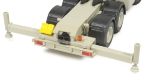 The ballast box features a ball and socket connection allowing it to be easily removed as required, which is now found on the latest truck models from Conrad instead of using the fifth wheel coupling to secure the platform. The printing around the outer sides of the ballast box are very crisp and highlight the casting details of the side panels. The model is presented in the familiar foam lined inner wrap with outer Conrad branded cardboard box.