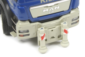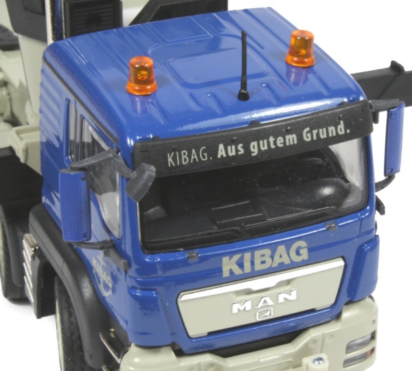 The front detailing of the cab and grill has been accurately produced with the chromed MAN logo prominently displayed along with the Kibag company detailing across the front and on the sides of the cab. Holes have been incorporated into the casting for the rear view mirrors and radio aerial to be fitted.