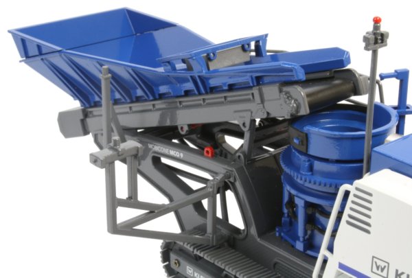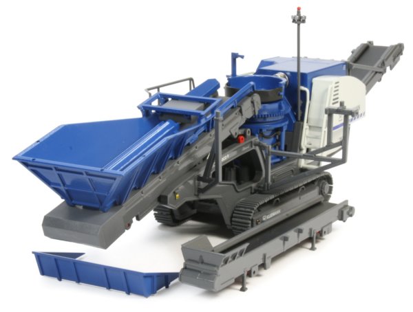 Following on from the Impact and Jaw crusher models, Kleemann has now commissioned a 1:50th scale model of their Mobicone MCO 9 EVO cone crusher which is the perfect match to the Mobicat MC 110 Z EVO already available from NZG. The MCO 9 EVO can be used as a secondary or tertiary crushing plant with a feed capacity of up to 260 ton/h. It weighs in at 28 ton with a 4.5m3 hopper capacity (Increased to 5.5m3 with the optional hopper extension). The D3C crawler chassis provides excellent manoeuvrability while power is provided by the Scania powerpack with diesel-direct-electric drive concept. The KX200 Cone crusher has a 950mm diameter and a capacity from 80 to 260 Ton/h depending on aggregate size.