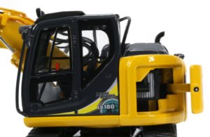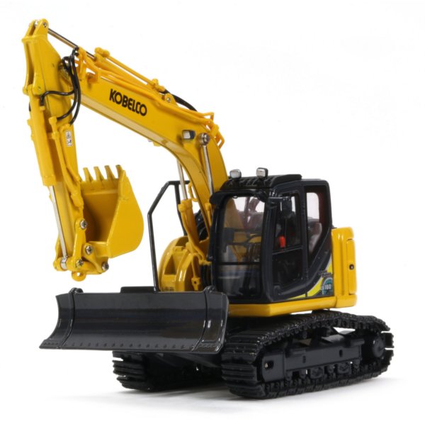 Kobelco ED160 BR-5 "Blade Runner" Tracked Excavator "USA Version"The Kobelco ED160 BR-5 is a fully capable tracked excavator with the added benefit of being able to perform the duties of a bulldozer. The PAT dozer blade allows the excavator to perform levelling and landscaping duties alongside the usual duties for an excavator, allowing it to be more versatile on site which in essence reduces the need for two machines, thus reducing costs. Ros has been chosen to produce the 1:50th scale replica which is presented here in the colours of Kobelco USA and they have certainly done a very good job in recreating the functionality of the full-sized machine. The cabin has a fully replicated interior which is finished in a light grey colour with everything within highlighted, from the main things like the seat and side console to the joystick controls and track drive levers. Less obvious detaining includes the hydraulic cut-off lever and the lever to operate the blade which is located on the side console. Exterior cabin details include a metal grab rail with integrated mirror, sun visor, roof window protection frame and roof mounted work lights with a front window screen wiper arm and printed rubber seals on all windows.