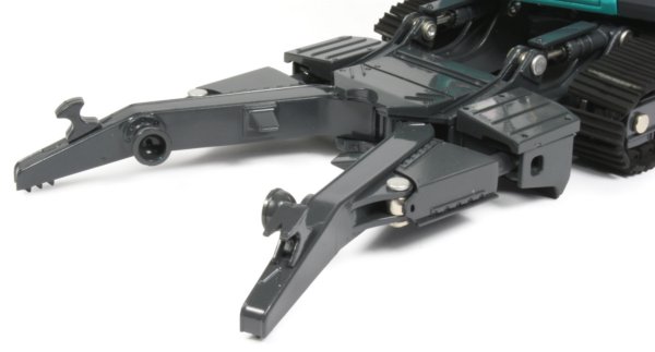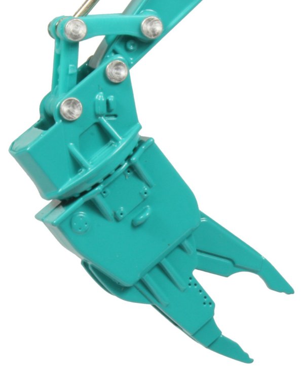 The clamps incorporate a cutting blade and two raised teeth which can be used for tearing and folding operations. Two die-cast models, both in 1:43rd scale, have been produced of this rather unusual machine and feature a fully functional clamp arm integrated into the tracked undercarriage which carries individually linked track segments.