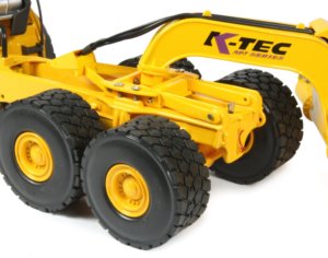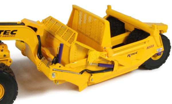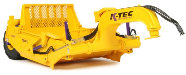 The ejector plate extends along the full length of the bowl and has a nice mesh upper guard while the front gate has a very nicely engraved K-Tec logo with another mesh spill guard. The fixed silver hydraulic piping is nicely modelled with flexible hoses added to connect up to the cylinders.