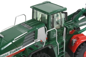 Presented here is the limited edition, 1:50th scale Liebherr L586 wheel loader in the Franz Fischer Spedition GmbH company decoration from NZG. The L586 is the largest model in the wheel loader range and the model from NZG has accurately captured all the details and realism of the full sized machine. The silver graphics throughout the model are especially good and contrast well with the dark green base colour.