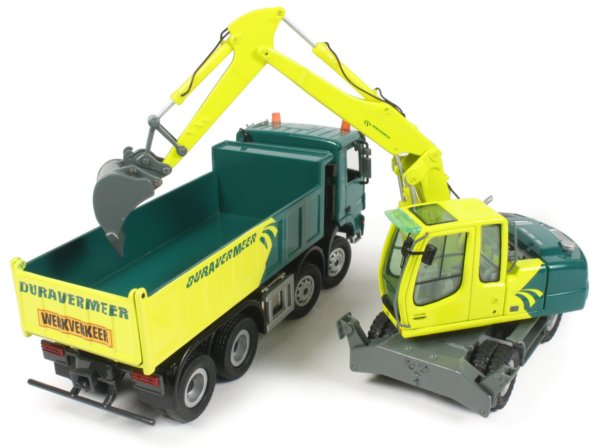 Presented here is the limited edition Dura Vermeer version of the Liebherr A314 wheeled excavator from NZG. The detail level is amazing for a model so small and the striking green and yellow livery gives good contrast.