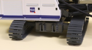 The model has hydraulic hoses fitted from the base carrier which are authentically shaped and hang accurately with a protective cage added to the side of the mast for added realism. The sledge houses the hydraulic rotary drive which has been nicely detailed with a screw utilised to give friction to the sledge allowing it to remain in position on the mast.