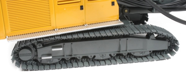 The undercarriage on the model features an extending track frame to provide better stability and is the same as that found on the LRB255, complete with the mounting sockets to fit the casing oscillator unit from the LRB accessory set for an alternative setup. The metal tracks are free rolling and individually linked with tensioned idlers and individually rotating rollers mounted in the track frames.