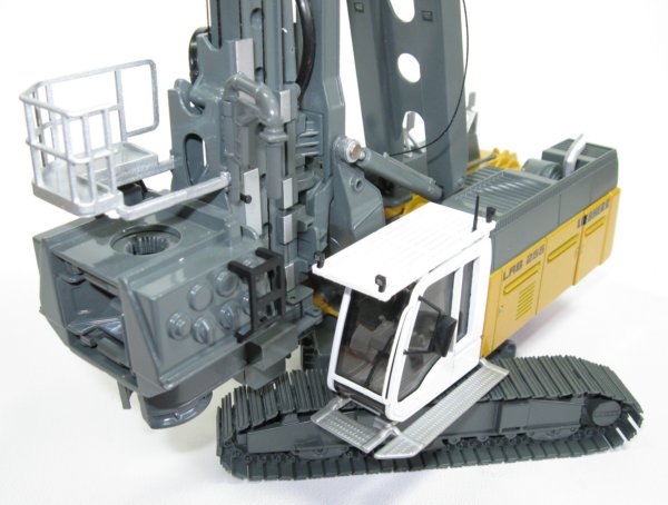 The kelly bar and auger drill are mounted to the mast of the LRB255 and the main frame has detailed drive motor and cast suspension detailing with flexible hydraulic piping fitted between the motor and transfer moulding.
