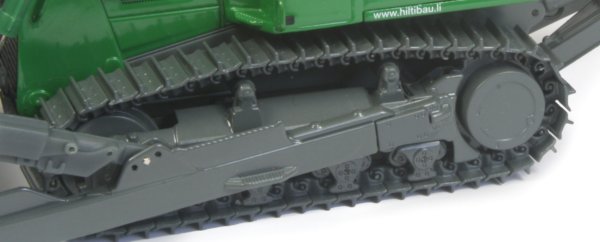 One of the really nice features found on the model is the accurate reproduction of the bogie running wheels which all pivot both within the arms as well as the arms actually pivoting. This is a very nice touch to fully demonstrate the suspension system fitted to the machine. The individually linked tracks have a single grouser on each pad along with visible bolt head detailing and the tracks are tensioned to keep them taut while allowing them to rotate smoothly.