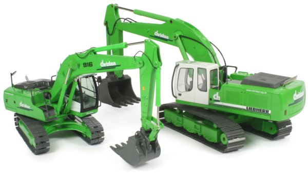 Presented here is the limited edition 1:50th scale Liebherr R916 Advance tracked excavator in the colours of Christen A.G, produced by NZG and exclusive to Heavy Transport Models. The Christen company was formed in 1952 by Alois Christians, purchasing his first excavator in 1963. The company has grown over the years, adding more equipment along the way. For more details of Christen A.G, visit their website.