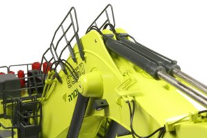 The undercarriage has individually mounted lower rollers with tensioned idler wheels keeping the tracks taut and the main final drive housings have good surface detailing. The paint finish is of a very high quality with authentic placement of the Taavura markings on the boom, body sides and counterweight.