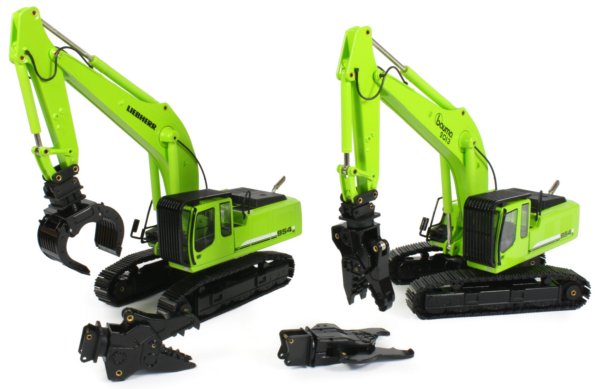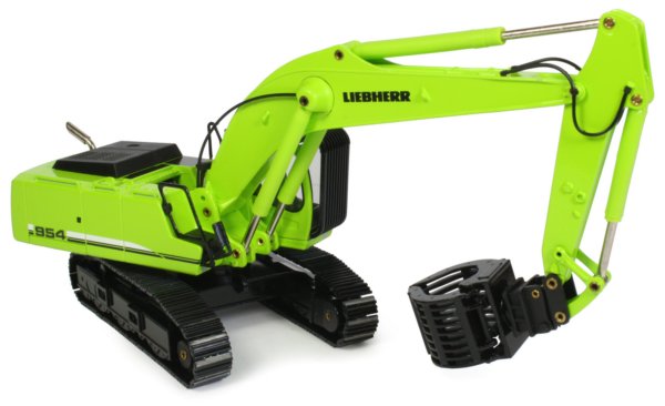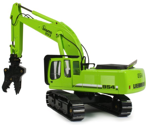 Presented here is the limited edition 1:50th scale Liebherr R954C tracked excavator which is produced by Conrad exclusively for Heavy Transport Models and decorated in a light green colour. First announced at the Bauma 2013 exhibition, two versions were done, one very limited 50 piece edition with the Bauma 2013 printing, and the other with standard Liebherr markings