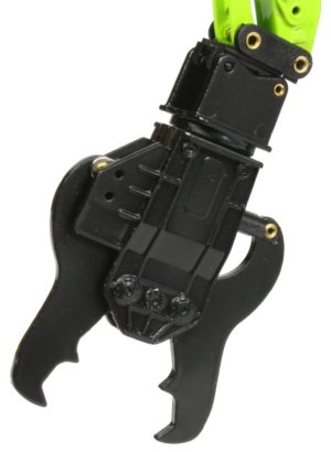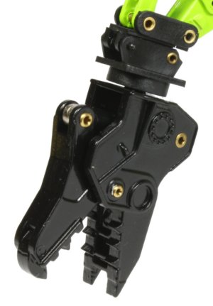The cab has an accurately scaled grab rail leading up the front edge of the frame with a plastic moulding for the interior, complete with seat and hand controls. The clear glazing has black printed seals simulating the rubber seals of the full sized machine for a little extra realism while a black cab guard has been fitted for added protection. The undercarriage has nicely formed linked metal tracks which are tensioned allowing them to remain taut while still rotating smoothly. The model is supplied with a quick couler and three different demolition attachments consisting of concrete shear, concrete pulverizer and sorting grapple.