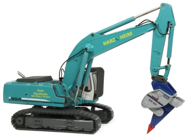 Presented here is the limited edition 1:50th scale Liebherr R954C tracked excavator which is produced by Conrad exclusively for Heavy Transport Models and decorated in the Harzheim demolition company decoration.