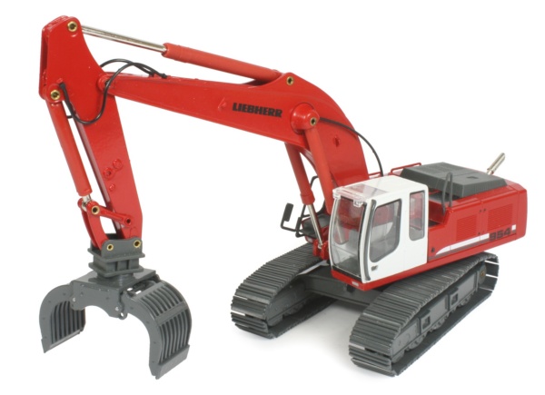 Presented here is the limited edition 1:50th scale Liebherr R954C tracked excavator decorated in a red paint colour with liebherr markings, produced by Conrad and exclusive to Heavy Transport Models. This is an interesting addition to the growing range of models from HTM, especially since it has a sorting grapple fitted instead of the standard bucket. The grapple was originally supplied by Conrad in the limited edition release of the R954BV demolition model where it fitted onto the end of the demolition boom.