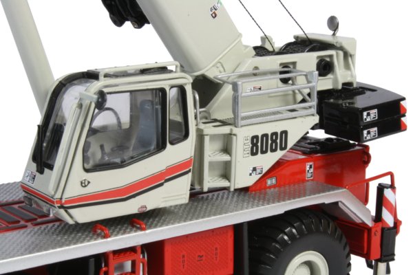 The RTC8080 is a versatile rough terrain 2-axle crane with a lifting capacity of 80 ton. Powered by a 6-cylinder Cummins QSB diesel engine delivering 270hp, the carrier has a three speed powershift transmission with 6 forward and 6 reverse gears allowing a top travel speed of 18.2 mph.