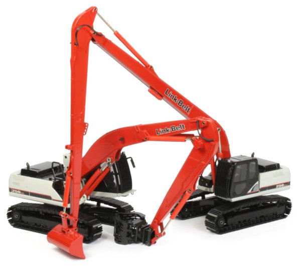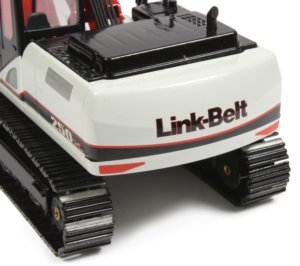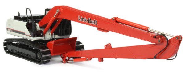 Presented here is the long reach version of the Link Belt 250X3 tracked excavator model in 1:50th scale from Conrad. It is based on the Case CX240 body and undercarriage castings and has been decorated in the latest Link Belt colours with an even paint finish allowing all the casting details to be seen.