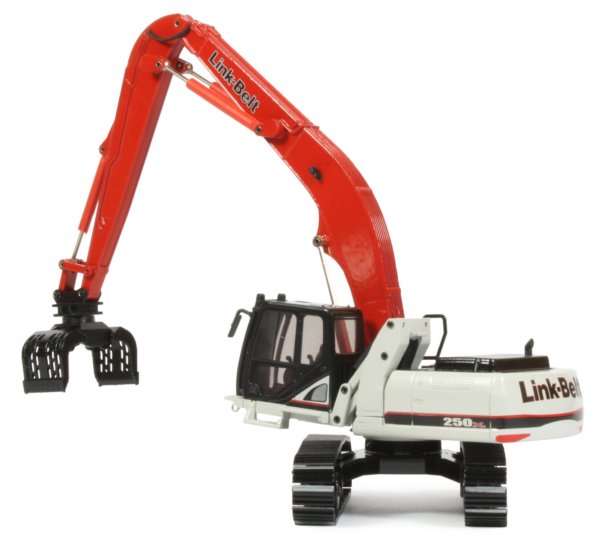 Presented here is the material handling version of the Link Belt 250X3 tracked excavator model in 1:50th scale from Conrad. It is based on the Case CX240 body and undercarriage castings and has been decorated in the latest Link Belt colours with an even paint finish allowing all the casting details to be seen.