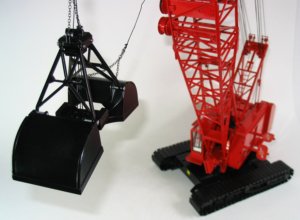 Presented here is the second variant of the 1:50th scale Manitowoc 4100W Vicon Equipped crane which is supplied with a dragline bucket, magnet and clamshell grab.