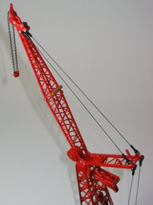The model is supplied with the original four shieve load block and also a new three shieve load block which is a much more defined casting with better quality paint finish. There is also a headacke ball provided for the whip line.