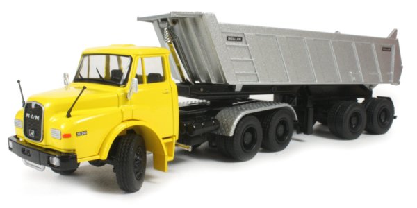 Presented here is the 1:50th scale MAN DHAS 3-axle truck with 2-axle Meiller tipping trailer from Conrad. The model is supplied in a foam lined cardboard inner with outer printed box and the wing mirrors and front fender rods are supplied loose in the box and need fitting to the model.