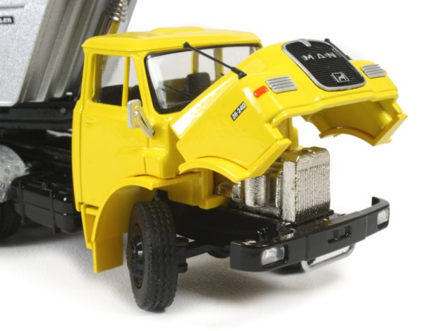 The trailer body has ridged structural detailing along the outer sides with the simulated tailgate release mechanism cast into the surface for a little added realism and has an annodized silver finish. The model is another good addition to the bonnetted MAN truck range.
