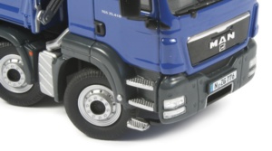 Presented here is the 1:50th scale MAN TGS 4-axle tipper with Meiller dump body from NZG. The model features the latest styling and is finished in a blue colour scheme with black chassis.