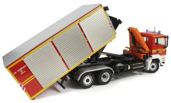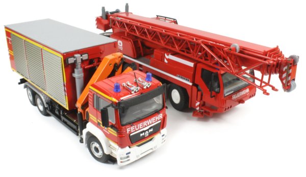 The paint finish on the model is excellent, as expected from Conrad and the model is supplied in a protective foam covered inner cardboard wrap with outer printed box. This is an interesting addition to the range of German fire service models and looks good posed next to the Liebherr LTM1070-4.1.