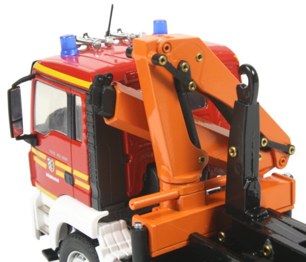 The Palfinger folding crane can be extended and posed realistically and the tip of the extending telescopic sections have a coupling which allows the grab to be fitted. |