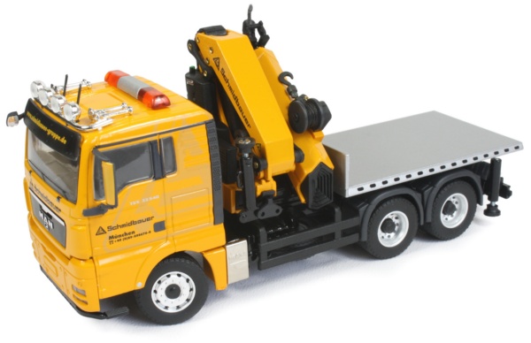 Presented here is the 1:50th scale MAN TGX 3-axle truck with Palfinger PK 53002-SH knuckle boom crane from Conrad in the Schmidbauer company livery.