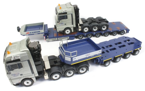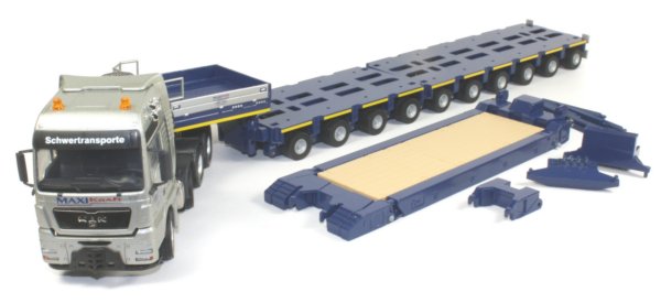 MAN TGX XXL SLT with Goldhofer Vessel Bed TrailerPresented here is the 1:50th scale MAN TGX XXL SLT prime mover with Goldhofer vessel bed trailer from Conrad.