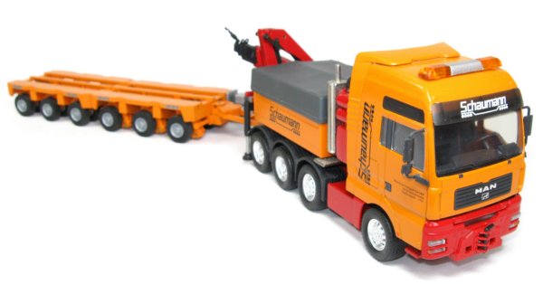 Presented here is the 1:50th scale MAN TGA 8x4 tractor with ballast box and palfinger crane in Schaumann livery from Conrad. The model is a very welcomed addition to the heavy haulage range that have been produced and the addition of the palfinger crane certainly adds to the model's appeal.