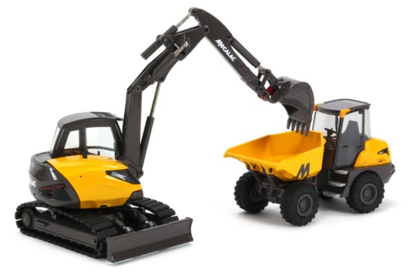 During the Intermat trade show in 2018, a 1:50th scale model of the 15MC was released which has been accurately replicated by Conrad. True to the original, the upper carriage and cabin utilise the same castings as the 15MWR (With the exception of the steering wheel console) with a brand-new undercarriage and offset two-piece boom.