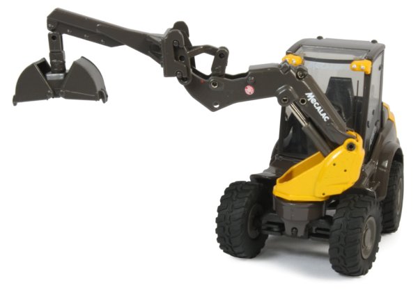 The addition of a lifting arm and hook further enhances the posing possibilities and the ability to remove the hook and replace it with a clamshell bucket shows the versatility of the loader to also dig holes and trenches when combined with the ability to rotate the loader arm by 90 degrees to each side of the chassis.