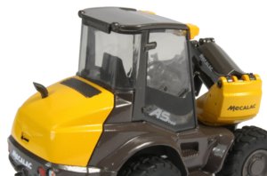The AS900 is an interesting development, powered by a Deutz TDC 2,9 L4 diesel engine generating 75hp. The hydrostatic drive and all-wheel steer provide excellent mobility and the monoboom design with internal Z-Kinematics offer optimum visibility, high tear-out forces and parallel motion allowing all the tasks of a standard wheel loader to be performed while extending its use for more interesting applications, particularly with additional work tools and this has been fully realised with the new 1:50th scale replica from Conrad.