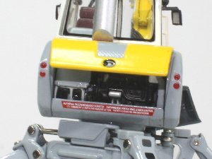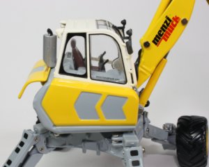 The upper structure has been accurately modeled with the large glass cab giving a great view of the highly detailed interior. All the controls can be seen with an excellent paint finish on the cab frame with the tiny front frame structure and black window seals all nicely highlighted. It is also good to see the seat painted in an authentic colour which does add to the realistic look. The rear view mirrors have been added to each side of the cab and have integrated work lights, complete with silver painted lenses.