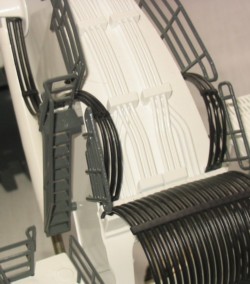 The bucket is well detailed with authentically reproduced wear protection and teeth.
