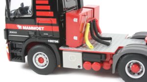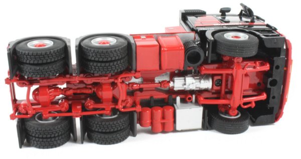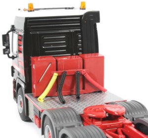 The Mercedes Benz 6x4 tractor is a very detailed unit with a replicated underside consisting of drive train from the gearbox to the rear driven axles with all the suspension detailing visible. The front axle features pivoting wheels but the degree of turn is limited.