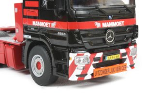 Presented here is the 1:50th scale Nooteboom OSDS-58-04V semi low loader trailer with Mercedes Benz Actros 6x4 tractor in the Mammoet livery from WSI Collectibles. With a 58 ton capacity, this trailer is capable of transporting a wide range of loads and WSI have included a number of small parts allowing the trailer to be configured for the job in hand.