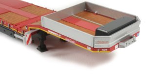 The main deck of the trailer features a textured surface with inset simulated wooded panels which really do add to the realistic look of the trailer. The trailer can be extended to transport long loads and this operates smoothly with a floating support bar which can be positioned at any point along the central support beam.