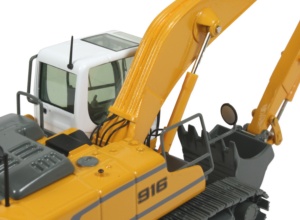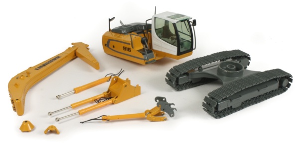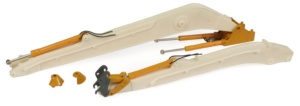 Following from the R954 long reach boom, Gaz has created a long reach boom to fit the Liebherr R916 from NZG. The kit consists of a resin boom and stick with flexible rubber hose and pins and uses the hydraulics and bucket linkage from the original model.